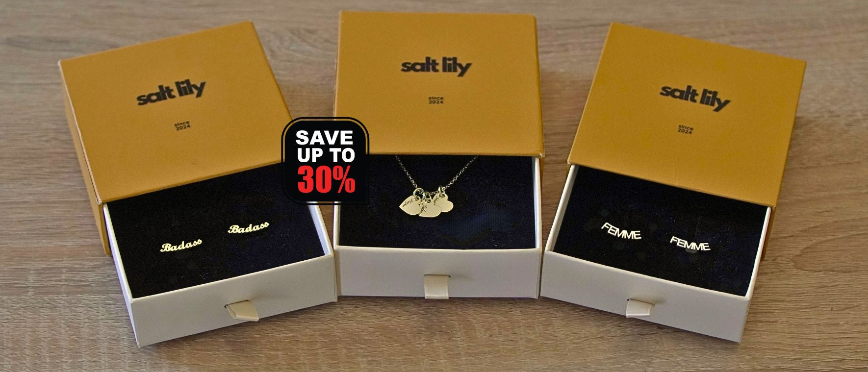 Design your own — just choose your text, font, and finish.